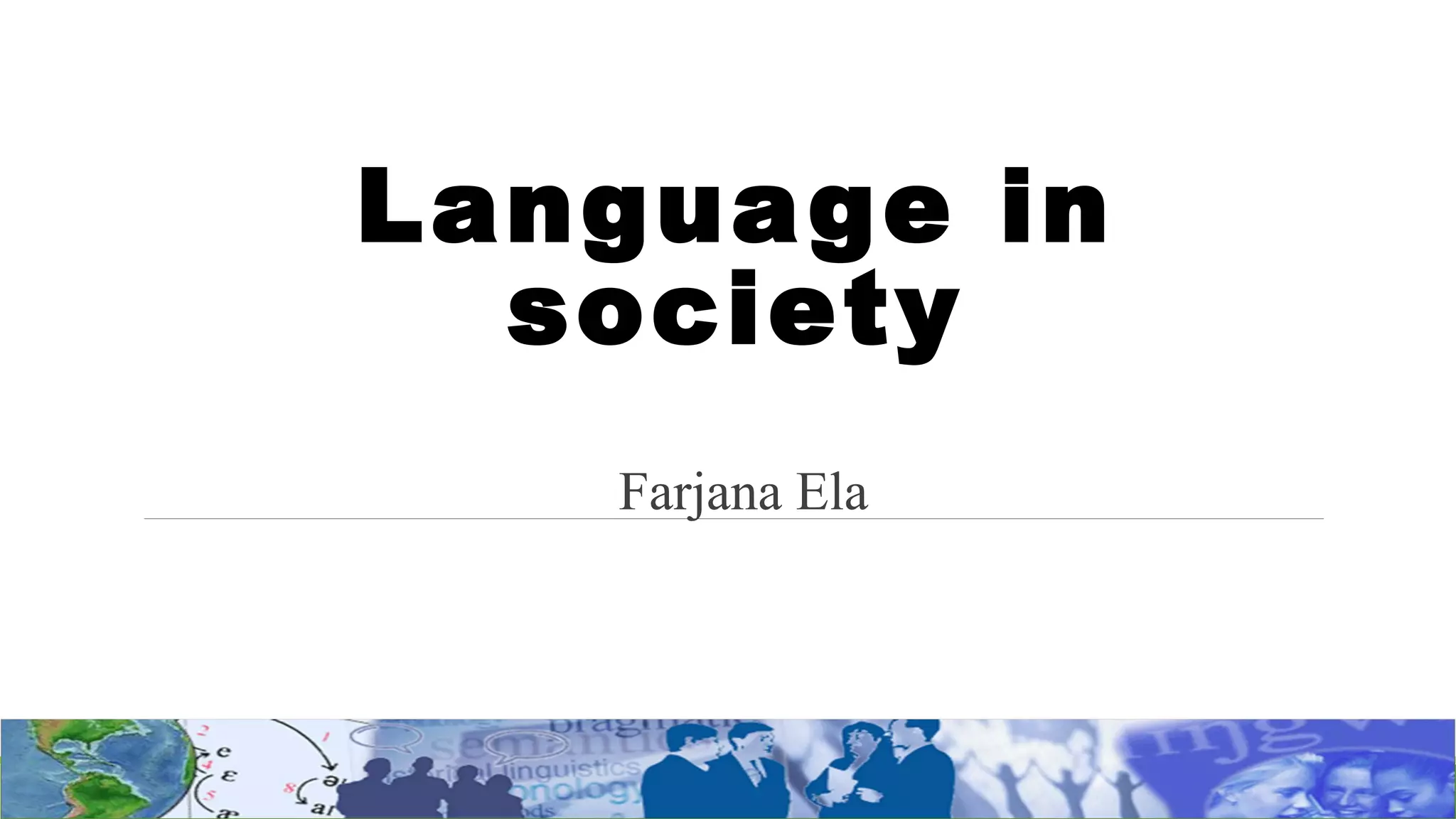 The document discusses sociolinguistics and language variation. It defines sociolinguistics as the systematic study of language in society, focusing on how individuals and groups use language in social contexts. There are three main perspectives in sociolinguistics: geographic, examining regional dialects; anthropological, studying the relationship between language, culture and thought; and sociological, analyzing the link between social relations and language varieties. Speech communities are groups that share the same or similar language varieties. Varieties include dialects, sociolects, and idiolects, which differ by region, social class, gender, age, and ethnicity at the lexical, phonological and syntactic levels. Pidgins are simplified mixed languages for basic communication between