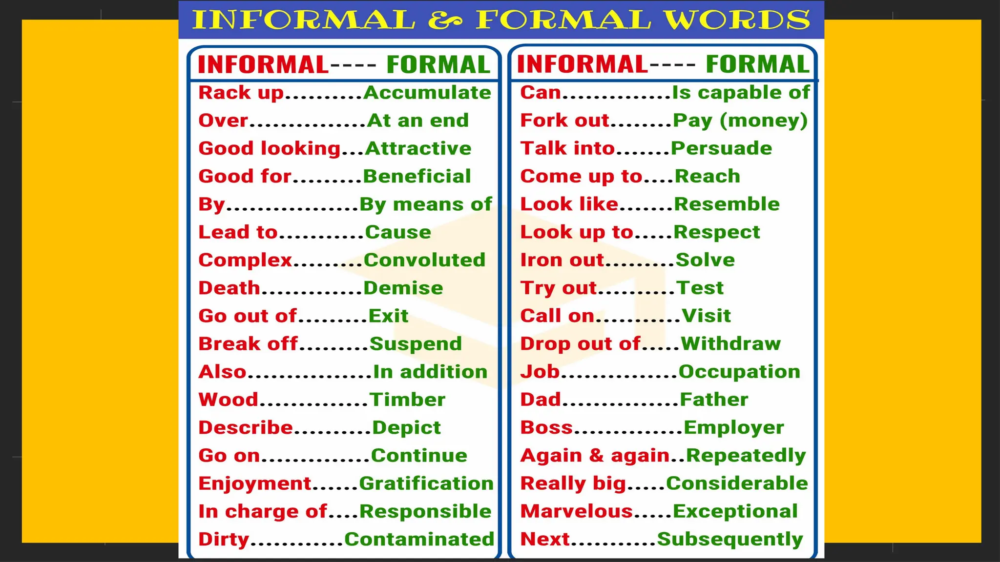 Formal language is less personal, and is more likely to use the ‘we’ as a