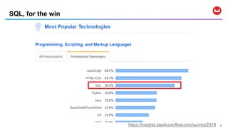 SQL++ is a query language that extends SQL to enable analytics on NoSQL data stored in JSON documents. It allows SQL queries to be run directly on JSON data without requiring an ETL process to move data into a relational database first. SQL++ supports features like querying nested objects and arrays in documents as well as aggregation functions. Several database systems like Couchbase, AsterixDB, and Apache Drill support SQL++.