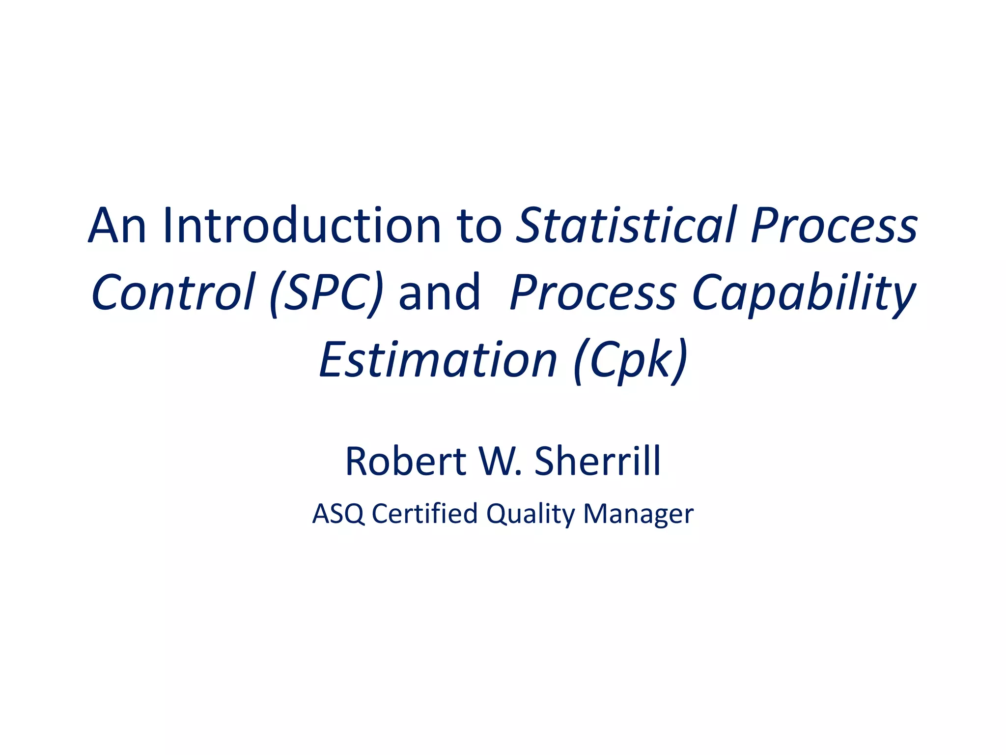 This document provides an introduction to statistical process control (SPC) and process capability estimation (Cpk). It outlines the key training objectives which are to understand SPC theory and how to apply it as a process control tool. It also introduces the typical control charts used in manufacturing industries and demonstrates how to generate these charts using MINITAB software. Finally, it reviews some basic SPC concepts like control limits, common vs special causes of variation, and different types of control charts.
