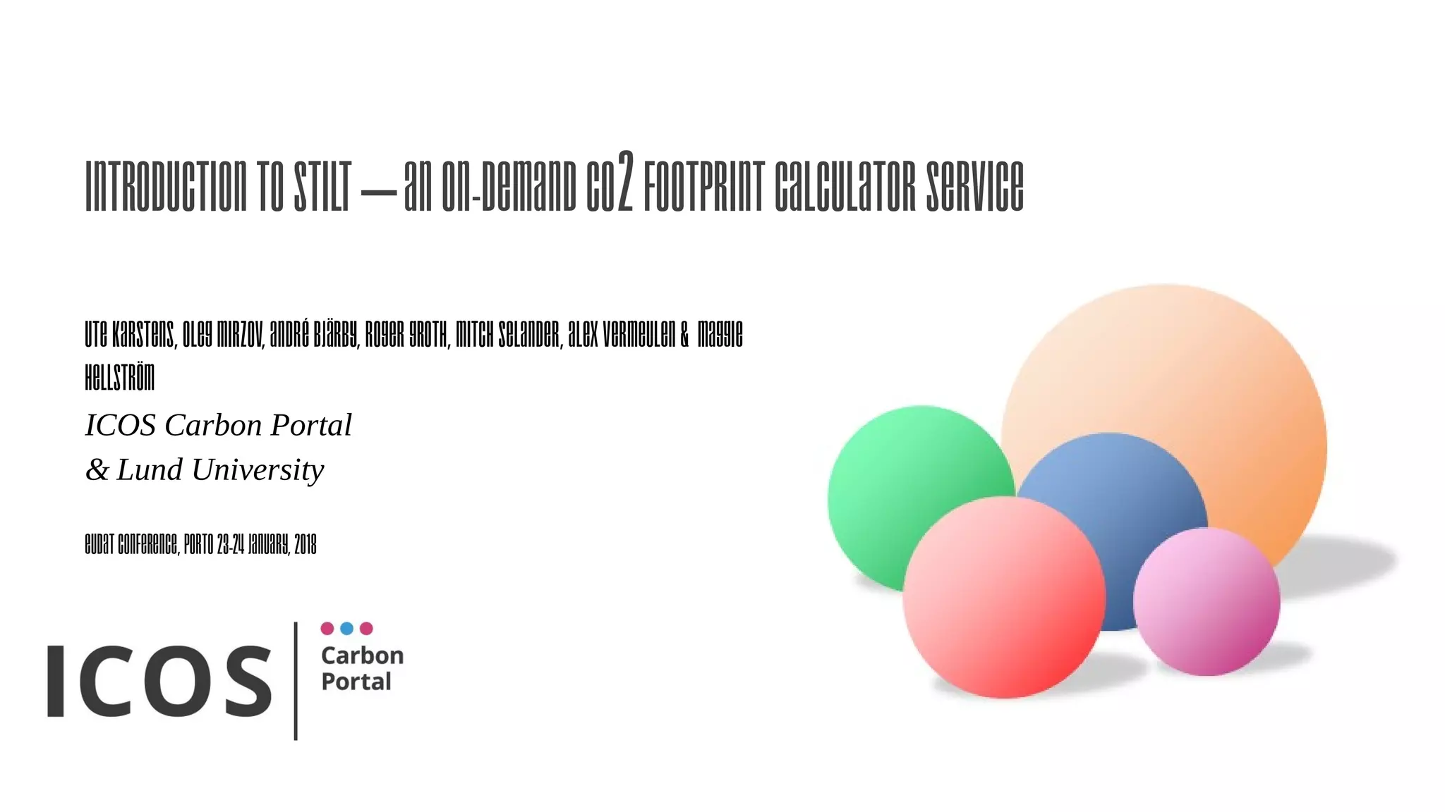 The document introduces STILT, a Lagrangian atmospheric transport model used to calculate carbon dioxide (CO2) footprints and sensitivities at ICOS atmospheric measurement stations. STILT runs are split into small jobs that are distributed across multiple virtual machines (VMs) in a cloud computing environment. While most components of the distributed STILT workflow have been tested, further work is needed to optimize the model code for parallel processing, initialize multiple worker VMs, address storage issues, and develop metadata and output visualization capabilities before the system can operate fully. A demonstration illustrates how a user could run STILT to model CO2 concentrations and contributing sources and sinks for a hypothetical station in Vienna.