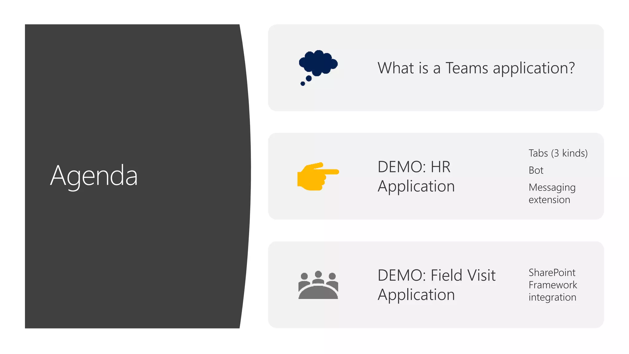 The document discusses different types of Microsoft Teams applications including tabs, bots, and messaging extensions. It demonstrates HR and field visit apps with different tabs. SPFx integration in Teams is highlighted as allowing apps to be built without hosting a website, reusing code in Teams and SharePoint, and other benefits. Links are provided for additional resources on building Teams apps.
