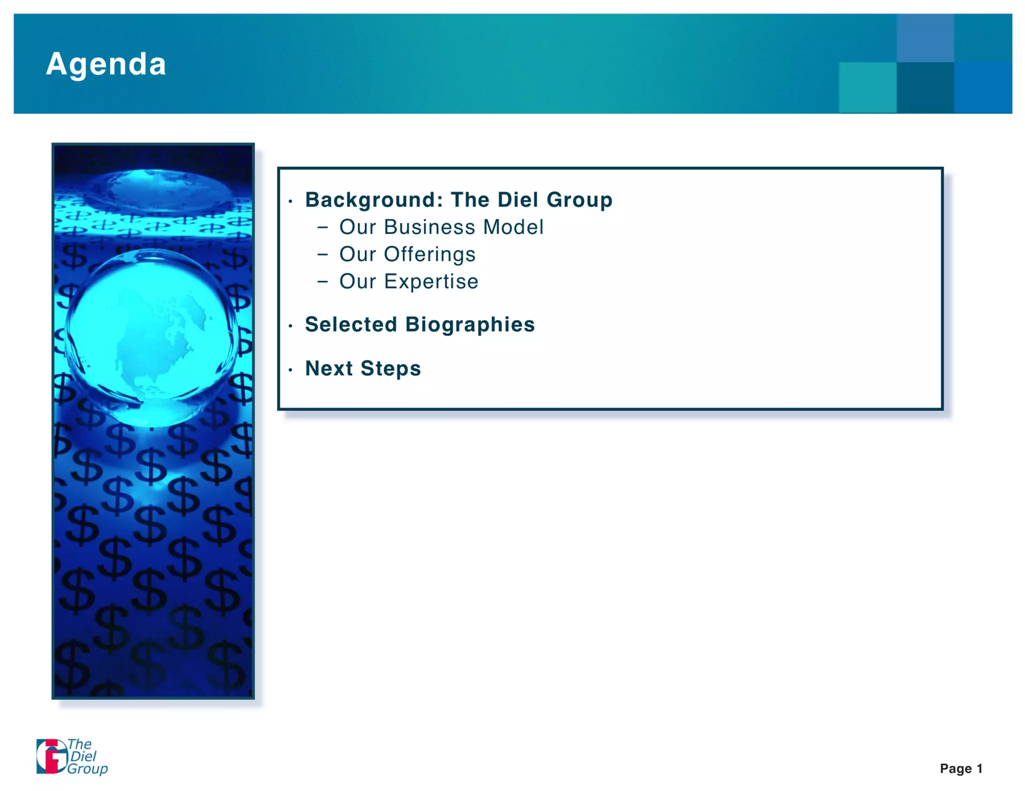 The Diel Group is a management consulting firm that forms teams of internal and external experts to execute customized engagements for clients. They focus on high-impact projects that require cross-functional expertise. Their approach involves assembling seasoned teams to efficiently analyze issues, develop tailored plans, and help with implementation. They leverage the consultants' industry and consulting experience to add strategic value for clients rather than following standardized templates.