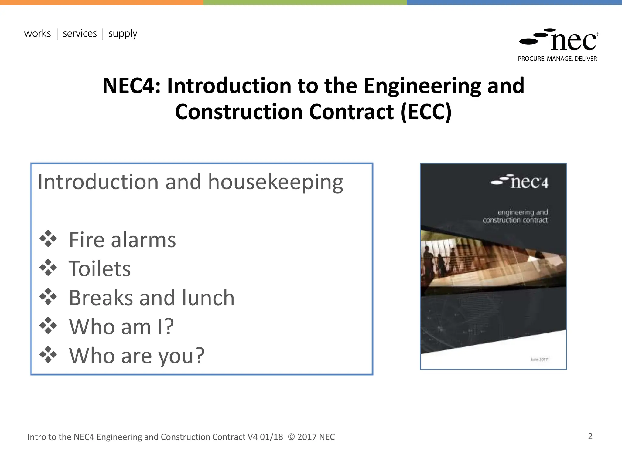 The document serves as an introduction to the NEC4 Engineering and Construction Contract (ECC), detailing its structure, objectives, and key processes. It outlines the principles guiding NEC contracts, emphasizing collaboration, clarity, and risk management. The document also describes various contract strategies, main option clauses, and essential processes for managing the contract effectively.