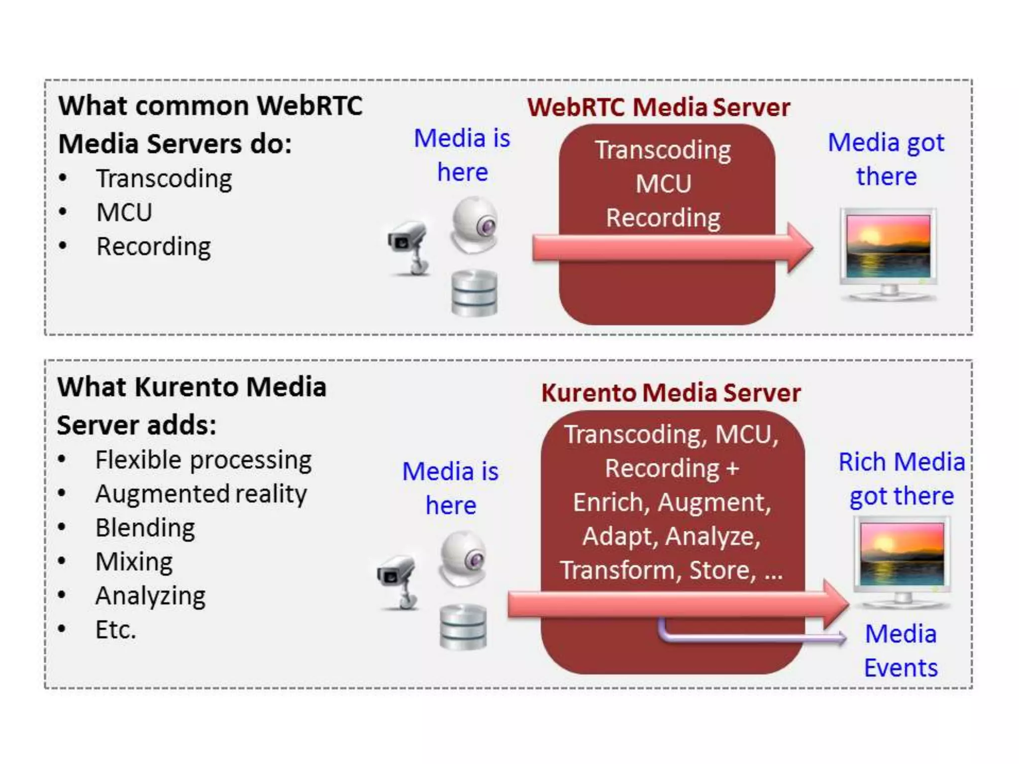 The document discusses multimedia development using a stream oriented generic enabler. It describes key concepts of media elements that provide specific media functionalities, and media pipelines that chain media elements to implement desired media logic. The Kurento Media Server provides a toolbox of endpoints, filters, and hubs that can be joined to create media pipelines for applications involving computer vision, group communications, augmented reality and more.