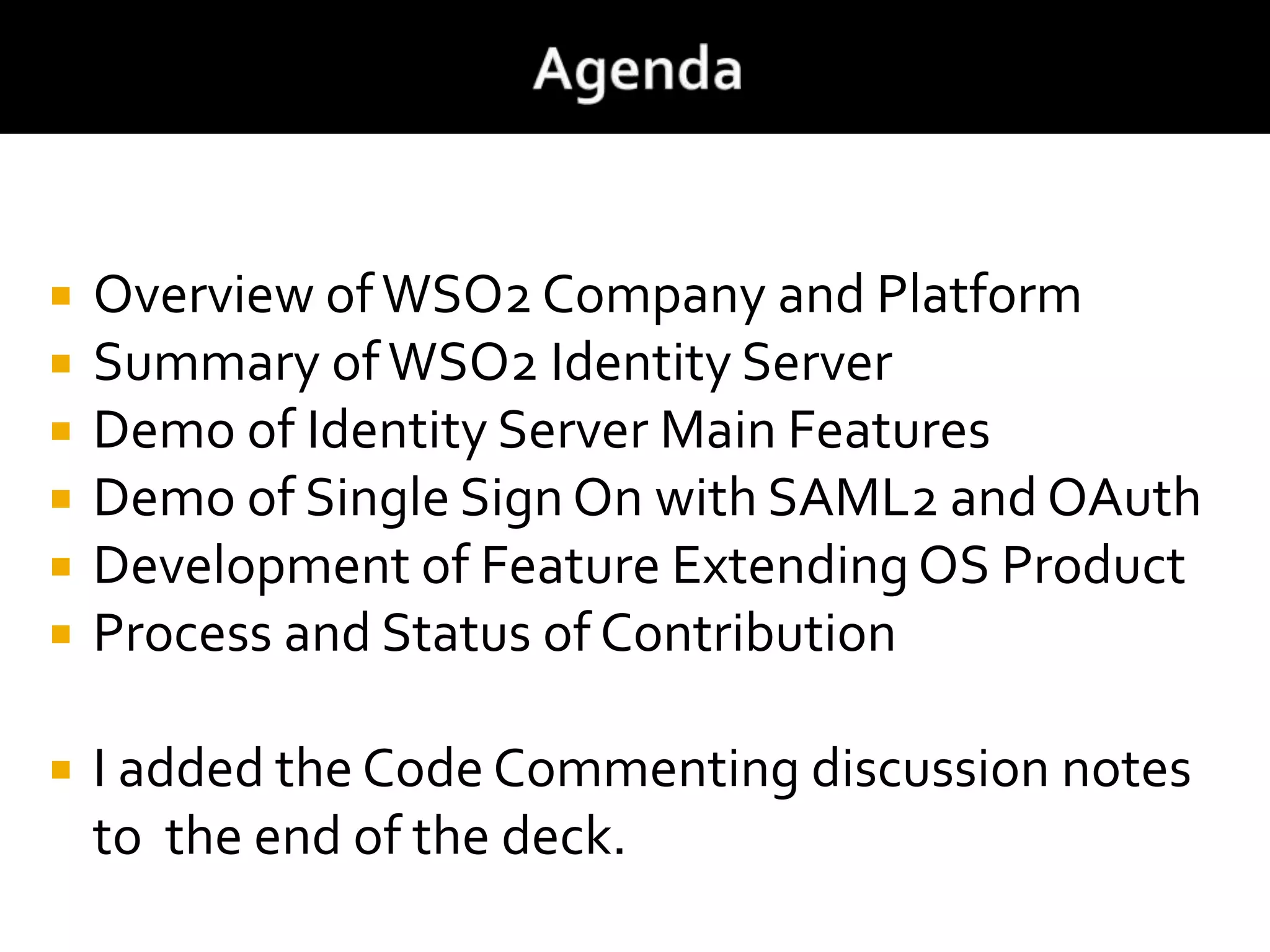 The document provides an overview of WSO2, detailing its open-source identity and entitlement management server that facilitates single sign-on, identity provisioning, and secure online interactions. It highlights various features such as role-based access control, multi-tenancy, and integration with services like Google Apps and Salesforce. Additionally, it discusses the architectural preferences for relational database solutions over LDAP for identity management, and includes specifics on a custom password reuse policy implementation for enhancing security.