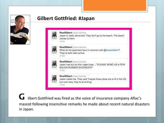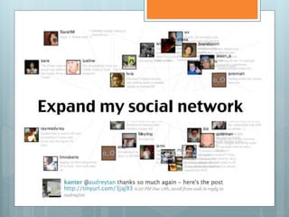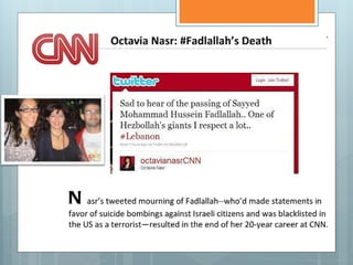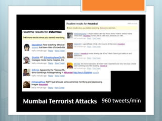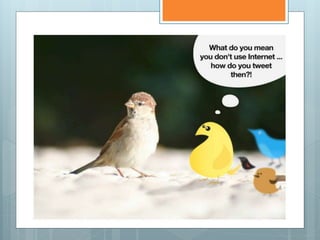 This document provides an introduction and overview of Twitter. It discusses why people use Twitter and provides some examples of how Twitter has been used, including for reunions, saving businesses, political campaigns, and social movements. It then defines key Twitter terms and features such as tweets, mentions, replies, direct messages, retweets, favorites, hashtags, protected tweets, trending topics, and lists. It also addresses questions about how many Lebanese users are on Twitter and why people tweet. The document serves as a basic guide to understanding Twitter and its functions.