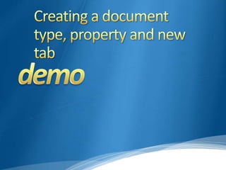 Umbraco is an open source content management system (CMS) that can be used to manage websites. It was developed in 2005 and has over 85,000 installations worldwide. The document discusses how to configure Umbraco by installing it manually through IIS, creating document types and templates to structure content, and extending its capabilities through macros and custom development.