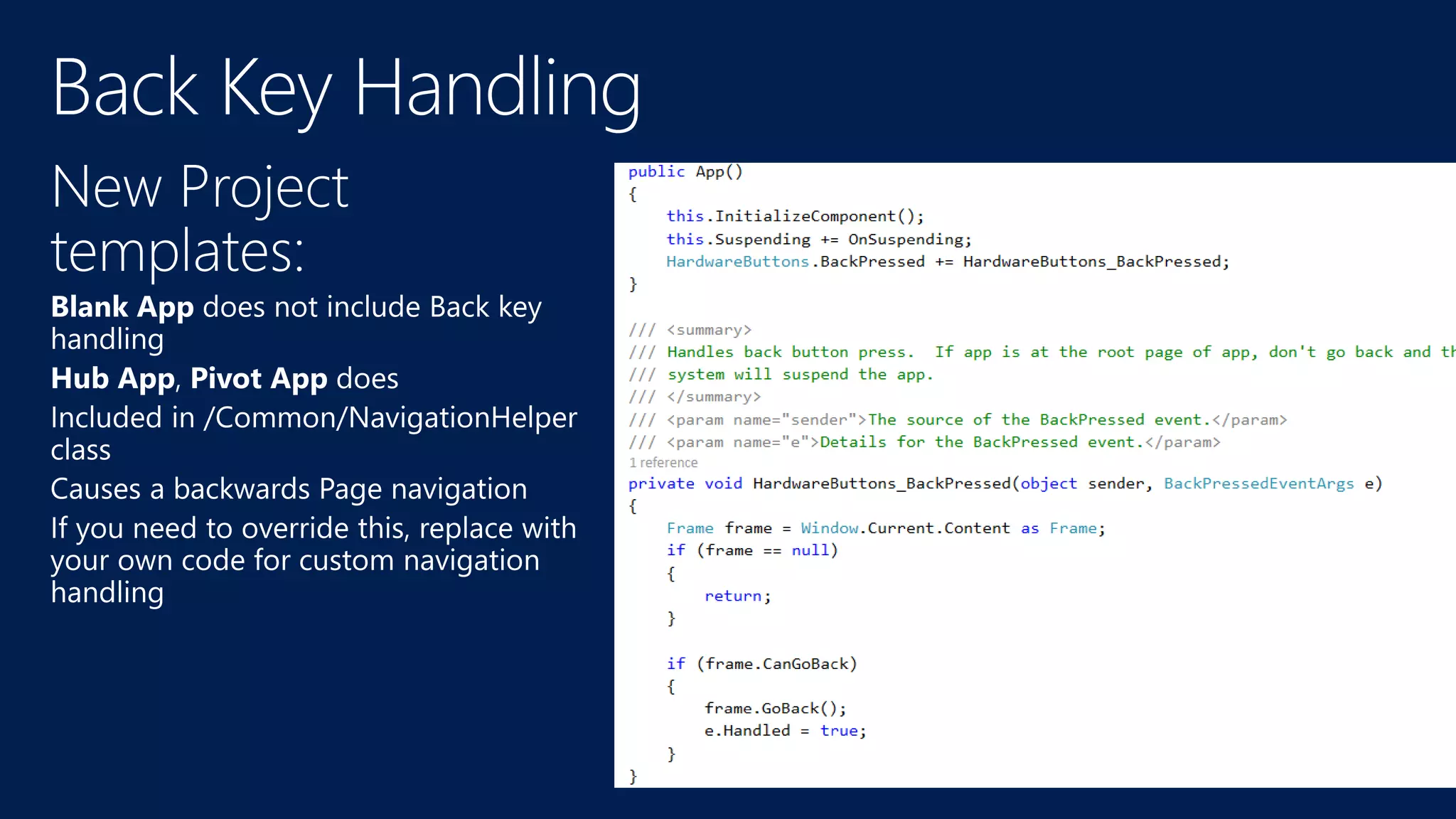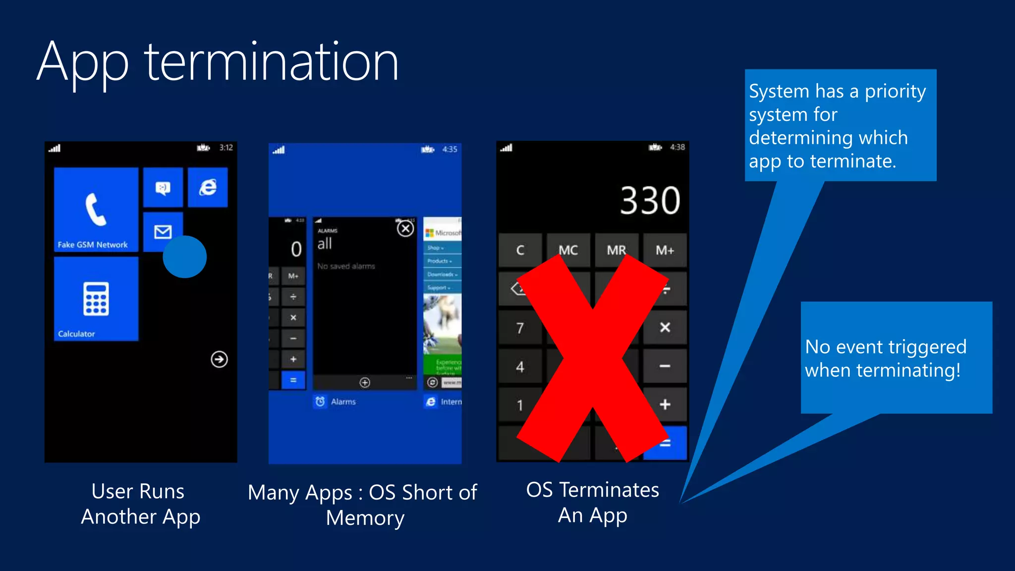 The document provides an overview of Universal Windows Apps, specifically focusing on app lifecycle events such as launching, suspending, and resuming, along with code examples in Visual C#. It discusses the importance of managing the app's state during suspension and provides guidelines on navigating within the app. Additionally, it touches on code sharing strategies for Windows Phone and Windows Store apps.
