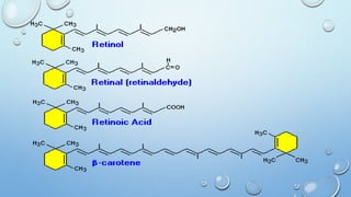 This document provides an introduction to vitamins, including their structure, sources, and diseases associated with deficiency and excess. It discusses fat-soluble vitamins A, D, E, K and water-soluble vitamins B1, B2, B3, B5. For each vitamin, it describes sources, structure, deficiency diseases, and in some cases therapeutic uses. The document aims to inform readers about the essential roles and health impacts of various vitamins.