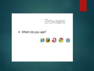 This document provides an introduction to web technology. It discusses the history of the Internet and how it originated from the ARPANET network developed by the US Department of Defense in the 1960s to connect universities. It describes how TCP/IP protocols were created to allow communication across the Internet and defines common web-related terms like browsers, URLs, and the World Wide Web. It also distinguishes between static and dynamic websites.