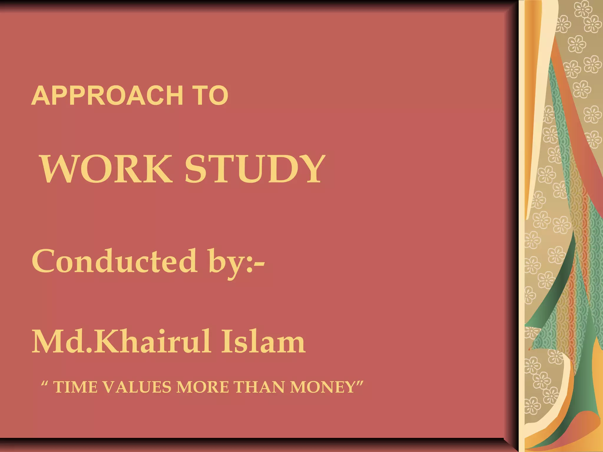 This document provides an overview of a training programme on work study for sewing floor staff. It discusses key aspects of work study including work measurement techniques, standard minute value calculation, efficiency calculation, and cost per minute calculation. The goal of the training is to increase productivity, output, and profitability through systematic analysis of work processes and setting fair productivity targets.