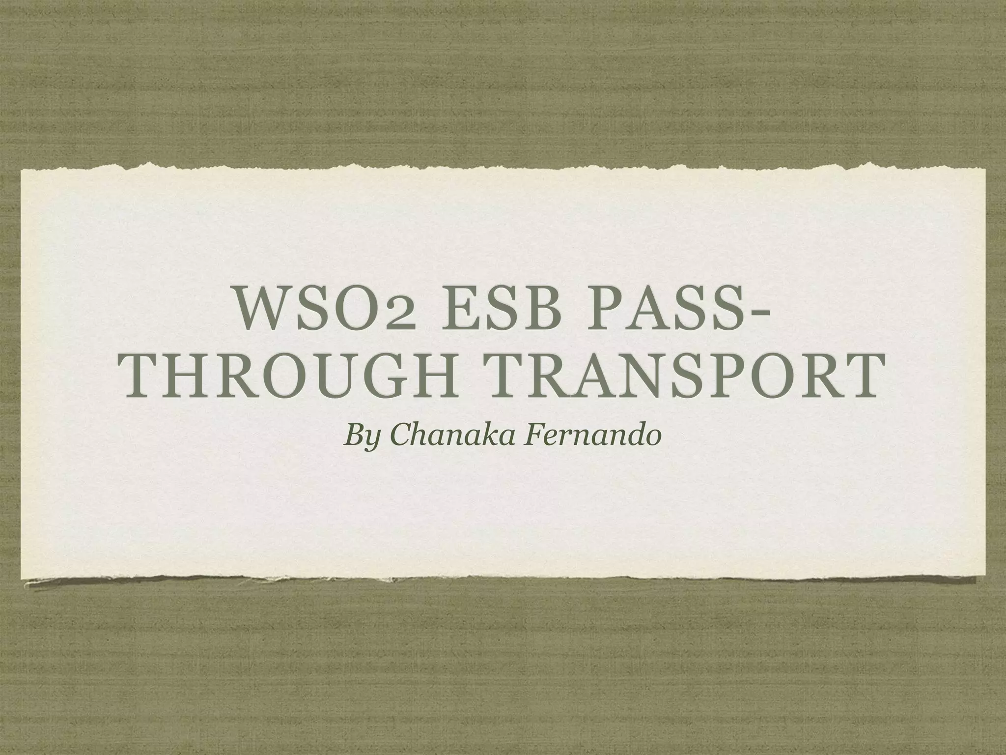 The document explains WSO2 ESB's Pass-Through Transport (PTT), which offers non-blocking HTTP transport for high-speed mediation of requests with low latency. PTT supports numerous concurrent connections and features automatic throttling to manage performance under slow conditions, unlike other methods like nHTTP that have more overhead. A high-level architecture of PTT details its state machine processes for handling requests and responses efficiently.