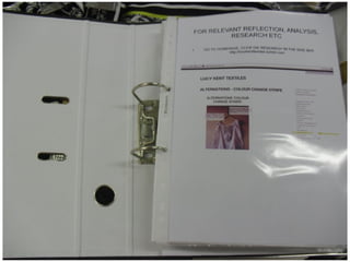 The document provides guidance and advice for a third year art student. It discusses using time effectively, setting short deadlines for projects, focusing research over holidays, keeping a reflective journal, and asking questions to develop ideas and understand one's practice. The student is encouraged to identify learning needs, define the scope of their study, and create a practical plan and timetable for the year.