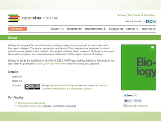 The document discusses services provided by OPEN to support DOL TAACCCT grantees in meeting grant deliverables through open licensing of work created with grant support. OPEN will provide assistance with developing learning content incorporating principles of universal design and accessibility. OPEN also offers support for collaborative open content development leveraging learning science, as well as professional development on topics like open policies, performance-based funding, and use of open educational resources.