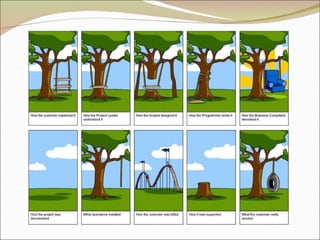 The document introduces key concepts in project management. It defines a project as a temporary endeavor to create a unique product or service. It outlines characteristics of successful and failed projects. Project management aims to predict and prevent issues through applying skills and tools to meet stakeholder needs and expectations. It discusses managing the triple constraints of scope, time and cost. Key areas of project management include scope, issue, cost, quality, communication, risk and change management. Project life cycles and tools like PERT charts and Gantt charts are also introduced.