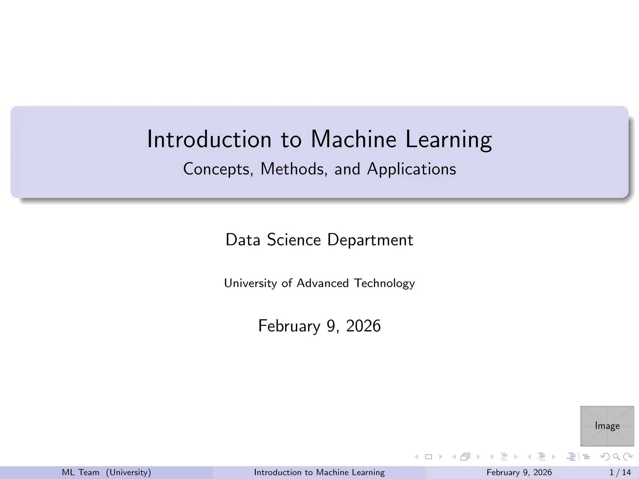 ML Team (University) Introduction to Machine Learning February 9, 2026 1 / 14