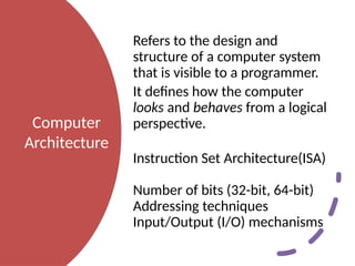 Input/Output (I/O) Devices – Allow communication with the outside world (keyboard, mouse,