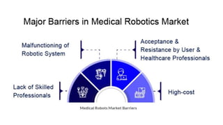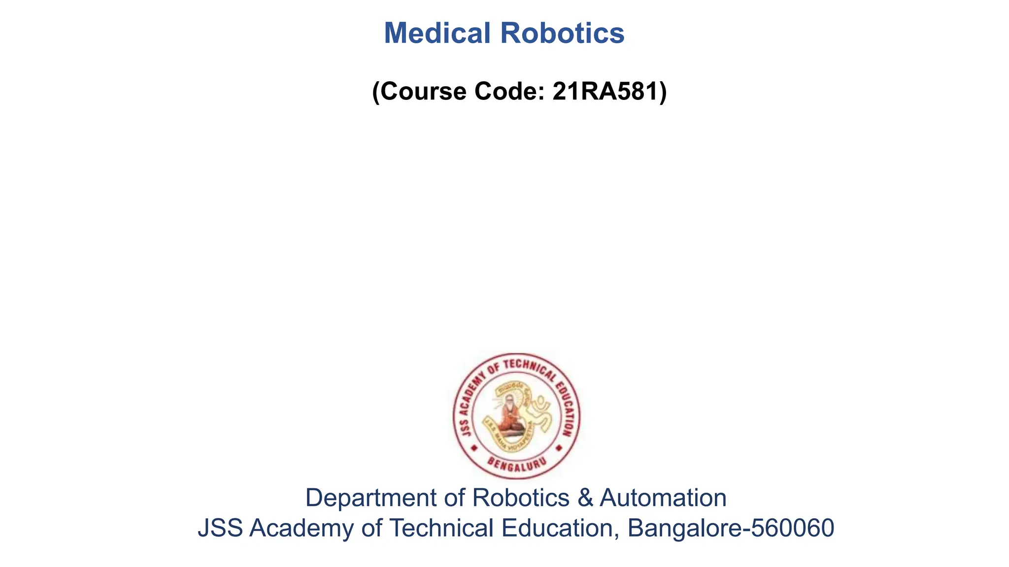 The document outlines the curriculum and objectives of a medical robotics course offered at JSS Academy of Technical Education, focusing on the application of robotics in healthcare, including surgical and rehabilitation robots. It details course outcomes, evaluation methods, and types of medical robots, emphasizing the use of advanced robotics technologies for minimally invasive surgeries and rehabilitation. Key topics include sensor navigation, robotic surgery systems, and the future potential of medical robotics in various healthcare applications.