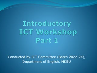 This document discusses the role of information and communication technology (ICT) in education. ICT refers to the use of technology to manage information and facilitate communication. The document outlines several benefits of ICT in educational institutions, including enhancing teaching and learning through interactive materials, providing access to vast information online, enabling e-learning and remote study, and facilitating collaboration through communication tools. ICT also helps with administrative tasks like data management and digital assessment. Overall, ICT empowers both students and educators by making education more accessible, engaging, and effective.