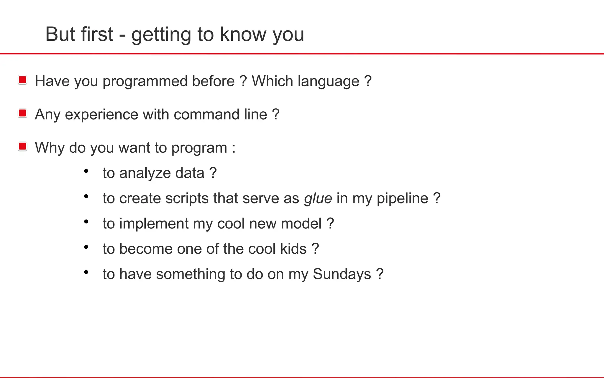 But first -getting to know you