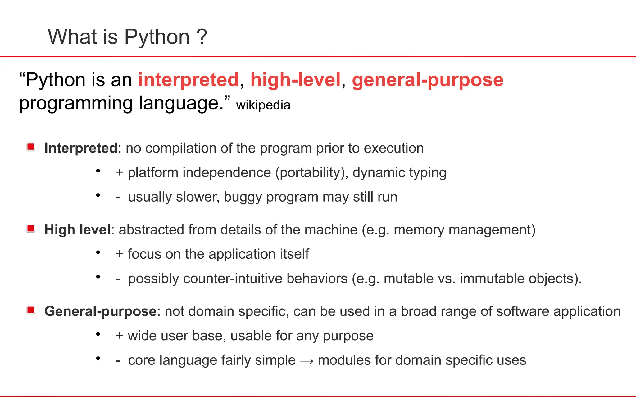 “Python is an interpreted, high-level, general-purpose