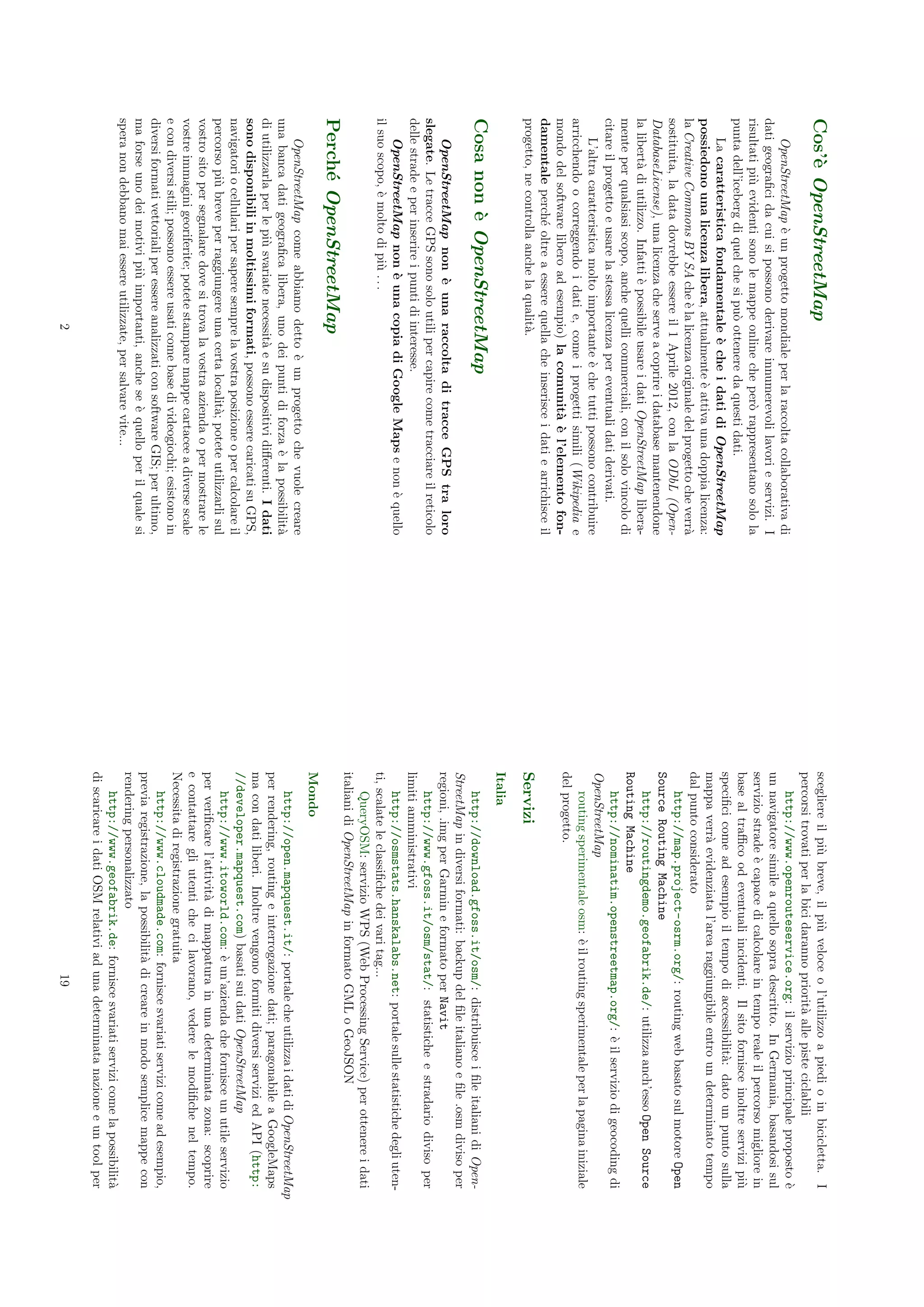 Il documento confronta le mappe di OpenStreetMap (OSM) con quelle di Google, evidenziando che OSM spesso presenta maggiore precisione e dettaglio. Viene sottolineata l'importanza di OSM come progetto collaborativo e le sue numerose applicazioni e strumenti disponibili per l'utilizzo e la contribuzione ai dati geografici. Inoltre, si menzionano vari collegamenti a risorse e servizi che mostrano come utilizzare e trarre vantaggio dai dati OSM.