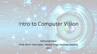 This document provides an introduction to computer vision. It was written by Muhamad Sabar for the Department of Informatics Engineering at the Bandung Institute of Technology in 2022. The document discusses computer vision projects and uses Spyder as a tool for Python development. Spyder is described as a powerful scientific environment designed for scientists, engineers and data analysts that combines advanced development features with data exploration, visualization and interactive execution capabilities.