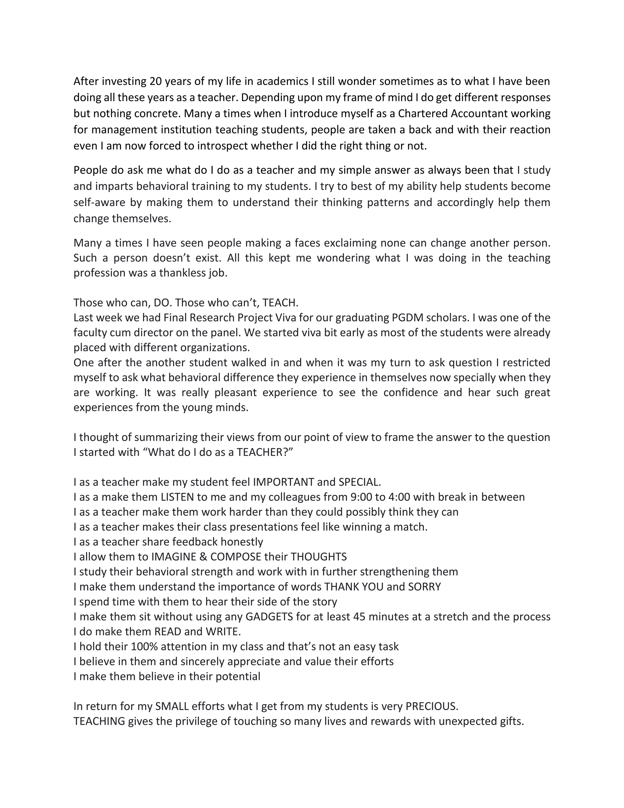 The author reflects on their 20-year teaching career and the challenges of self-identification as a teacher while striving to help students become more self-aware and confident. Despite facing skepticism about their role, the author finds fulfillment in the positive impact they have on students' lives and their growth. Through personal anecdotes, the author emphasizes the importance of understanding, empathy, and the rewards of teaching.