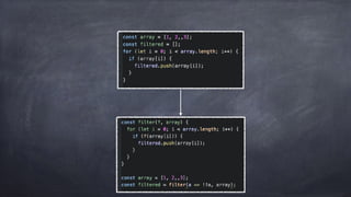 This document discusses the benefits of functional programming over object-oriented programming. It notes that OOP can be difficult to test, maintain, and handle concurrency due to shared mutable state. Functional programming uses a mathematical approach with pure functions, immutability, and composition to create code that is simpler, more reusable, testable, and able to handle concurrency better. Some key FP concepts discussed are purity, immutability, higher-order functions, function composition, currying, and common functions like map, filter, and reduce.
