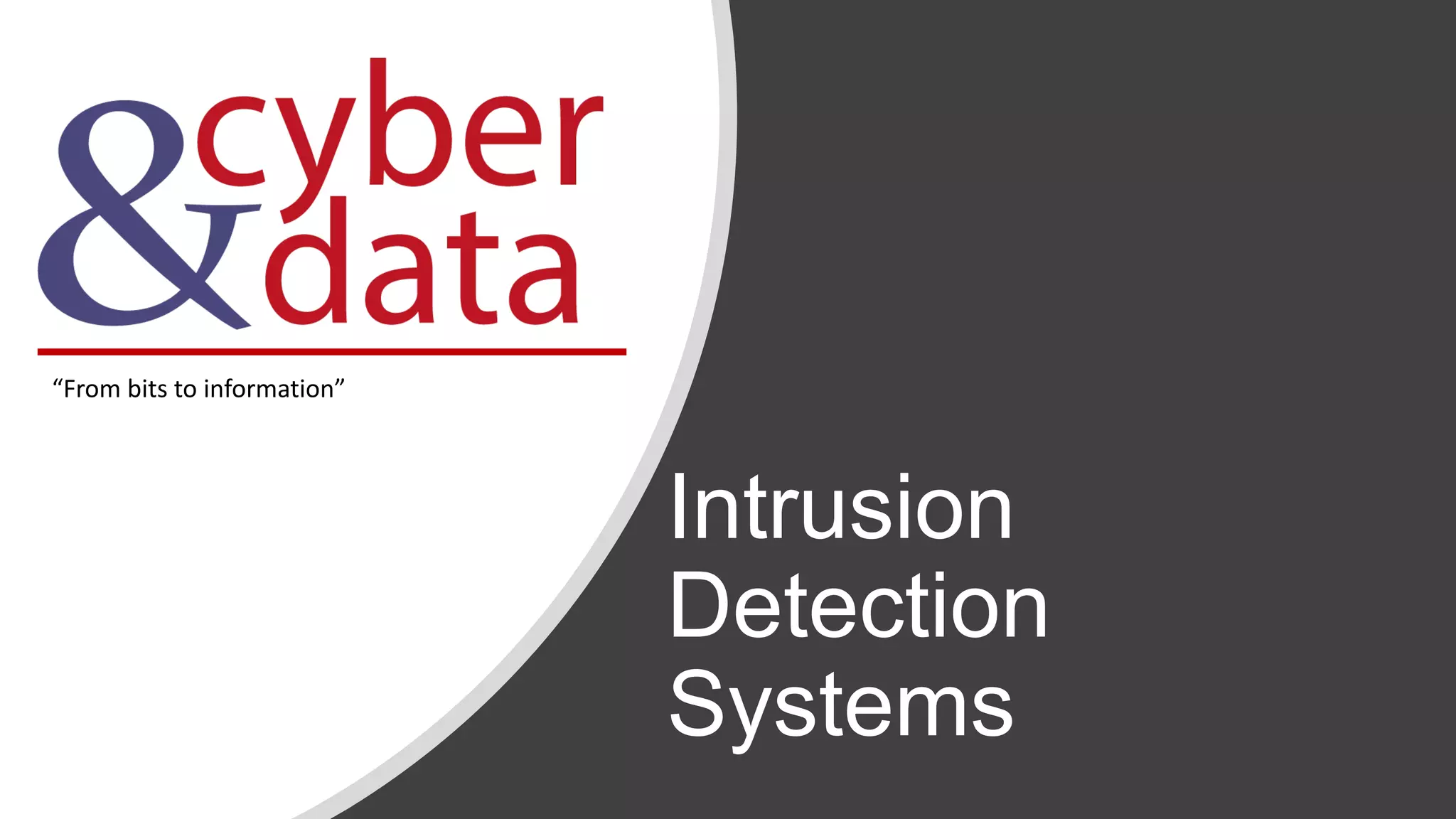 This document discusses intrusion detection systems, including common attack patterns like port, ping, and login sweeps. It outlines Snort as an example network-based intrusion detection system and provides Snort rule examples. Different types of intrusion detection systems are also covered, along with considerations for host-based versus network-based placement.