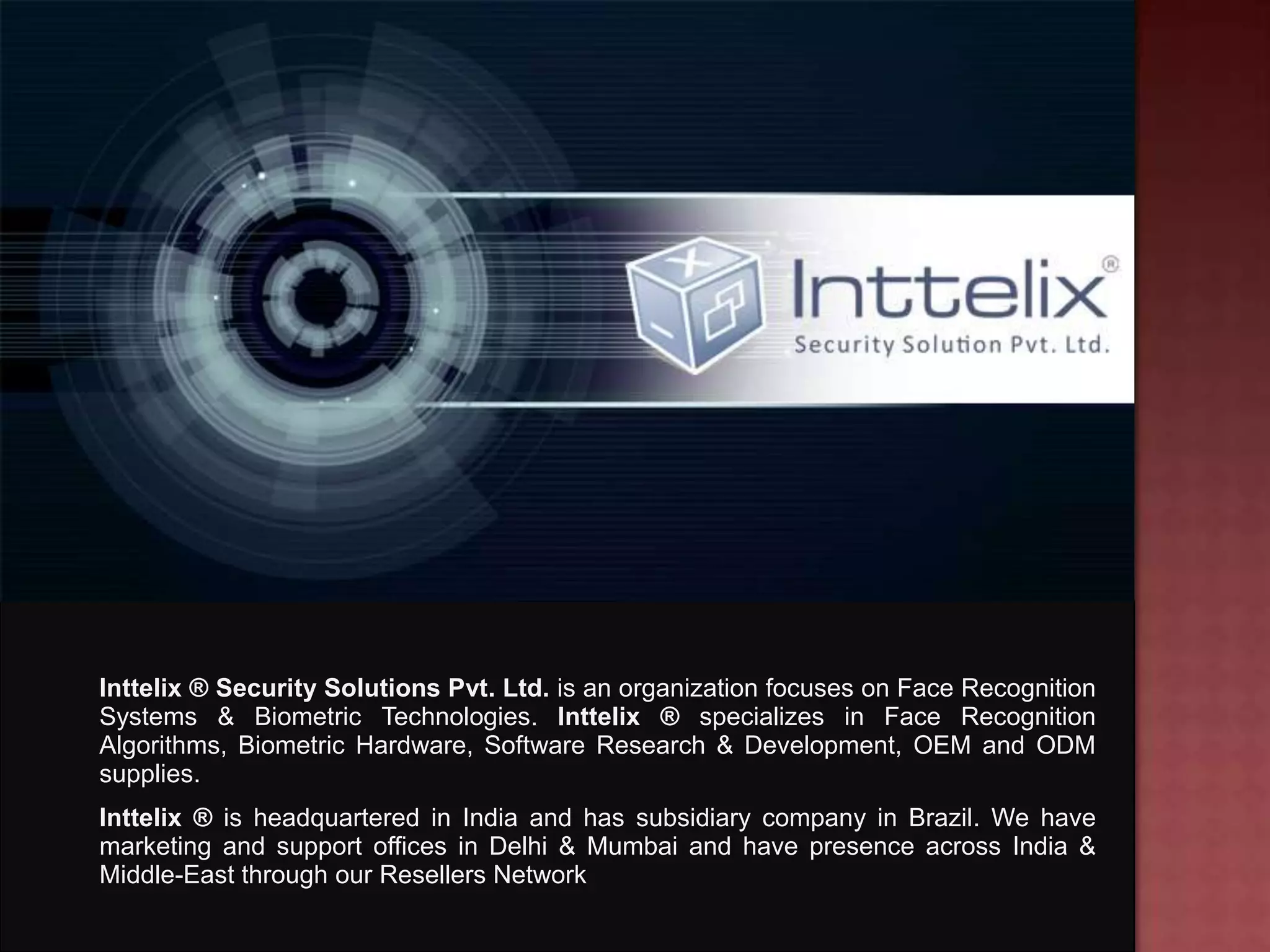 Inttelix Security Solutions is an organization focused on face recognition systems and biometric technologies. It specializes in face recognition algorithms, biometric hardware, software R&D, and OEM/ODM supplies. Inttelix is headquartered in India and has a subsidiary in Brazil, with marketing/support offices in Delhi and Mumbai serving India and the Middle East through resellers. The company provides facial recognition technology for security applications like stranger detection surveillance.