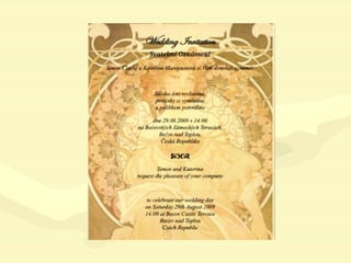 This document provides travel information and accommodation options for traveling from the UK to Prague, Czech Republic and then on to Bečov nad Teplou. It lists transportation options and prices for flights from several UK cities to the Isle of Man and Dublin, and bus or plane routes from Prague to Karlovy Vary and Bečov nad Teplou. Car and minibus rental prices are provided for 6 day periods. Finally, it provides a link to reserve accommodations at Pension Hradni Basta castle in Bečov nad Teplou.
