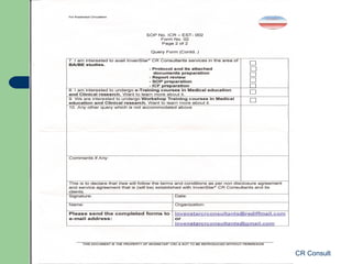 - The organization aims to provide quality clinical research services and has contracted over 5 projects with national and international clients in its first years of operation.