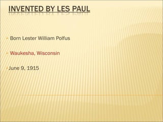Paul was a self-taught musician who built his own recording equipment as a youth and experimented with guitar designs, convinced that a solid-body electric guitar could produce better sound with reduced feedback. In the 1940s and 1950s, Paul worked with Gibson and developed the successful "Les Paul Model", the first commercially produced solid-body electric guitar, which helped popularize the instrument and influenced many other guitar designs.