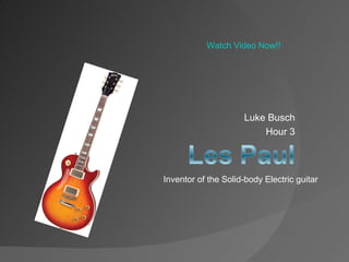 Lester William Polfus, better known as Les Paul, is considered the inventor of the solid-body electric guitar. He was born in 1915 in Waukesha, Wisconsin and started playing various instruments such as harmonica, piano, guitar and banjo from a young age. Paul experimented with early solid body models in the 1940s but the idea was rejected by Gibson. In 1952, the Les Paul guitar was a commercial success and helped popularize the solid body electric guitar design.