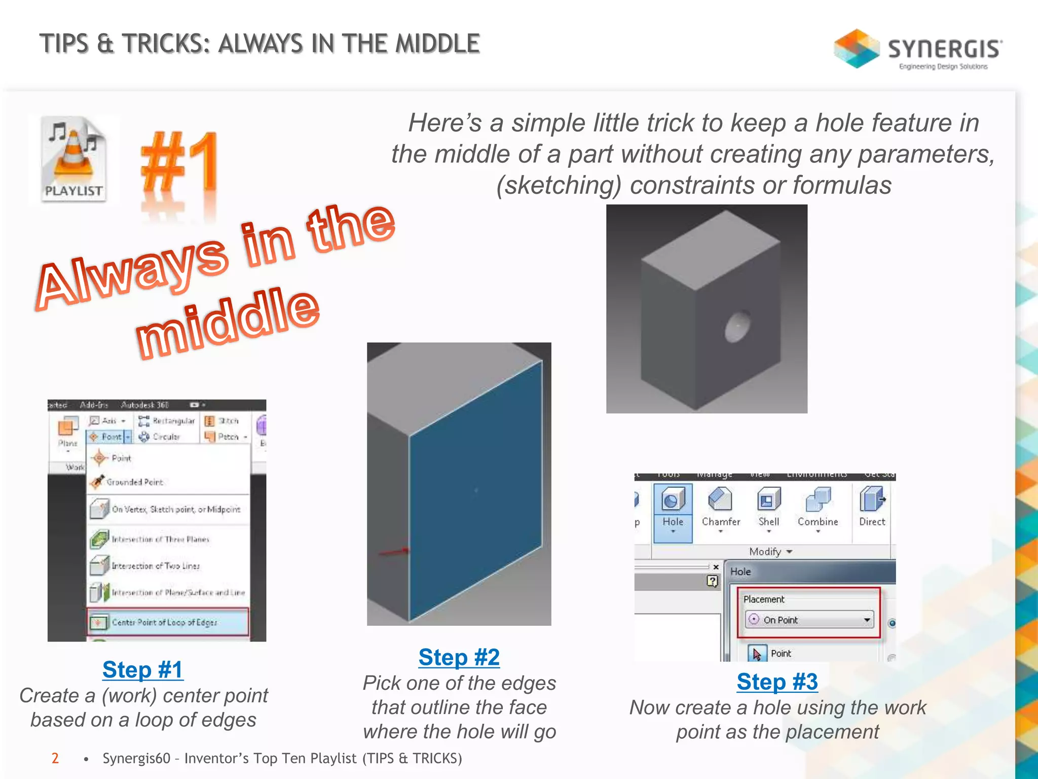This document contains tips and tricks for Autodesk Inventor. It discusses methods for keeping holes centered in parts without parameters or constraints, setting descriptive names for parts in the browser window, copying and replacing components in assemblies, moving and rotating imported bodies, offsetting sketches from faces, measuring between hole centers without additional features, and using phantom and reference assemblies. It also covers section view alignment, diagnosing prompts to save dependent files, and an undocumented geometry checking utility.