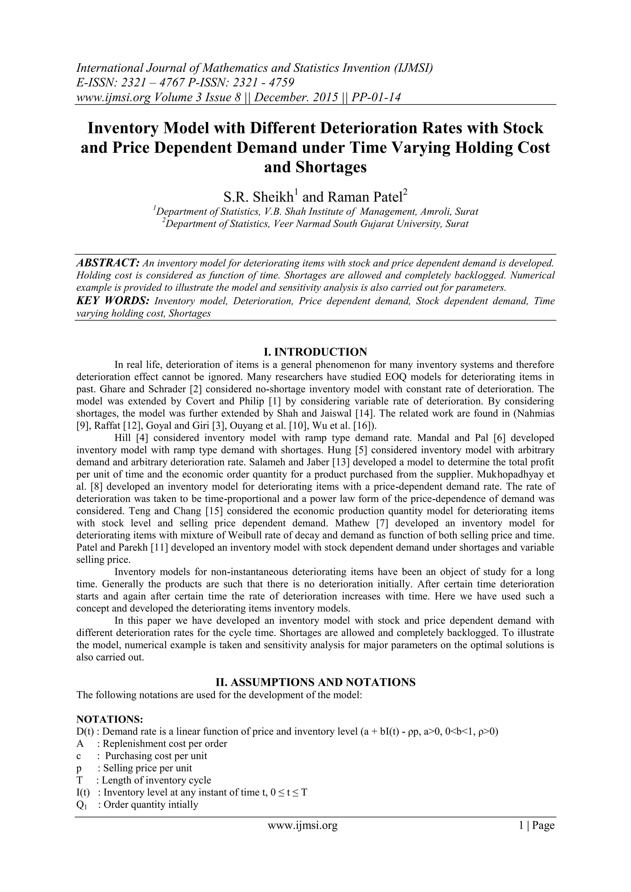 This document presents an inventory model for deteriorating items influenced by stock and price-dependent demand, accounting for time-varying holding costs and possible shortages. The authors develop mathematical equations to describe the model's dynamics, incorporating various parameters and assumptions related to demand and inventory levels. A numerical example and sensitivity analysis are provided to illustrate the model's application and significance.