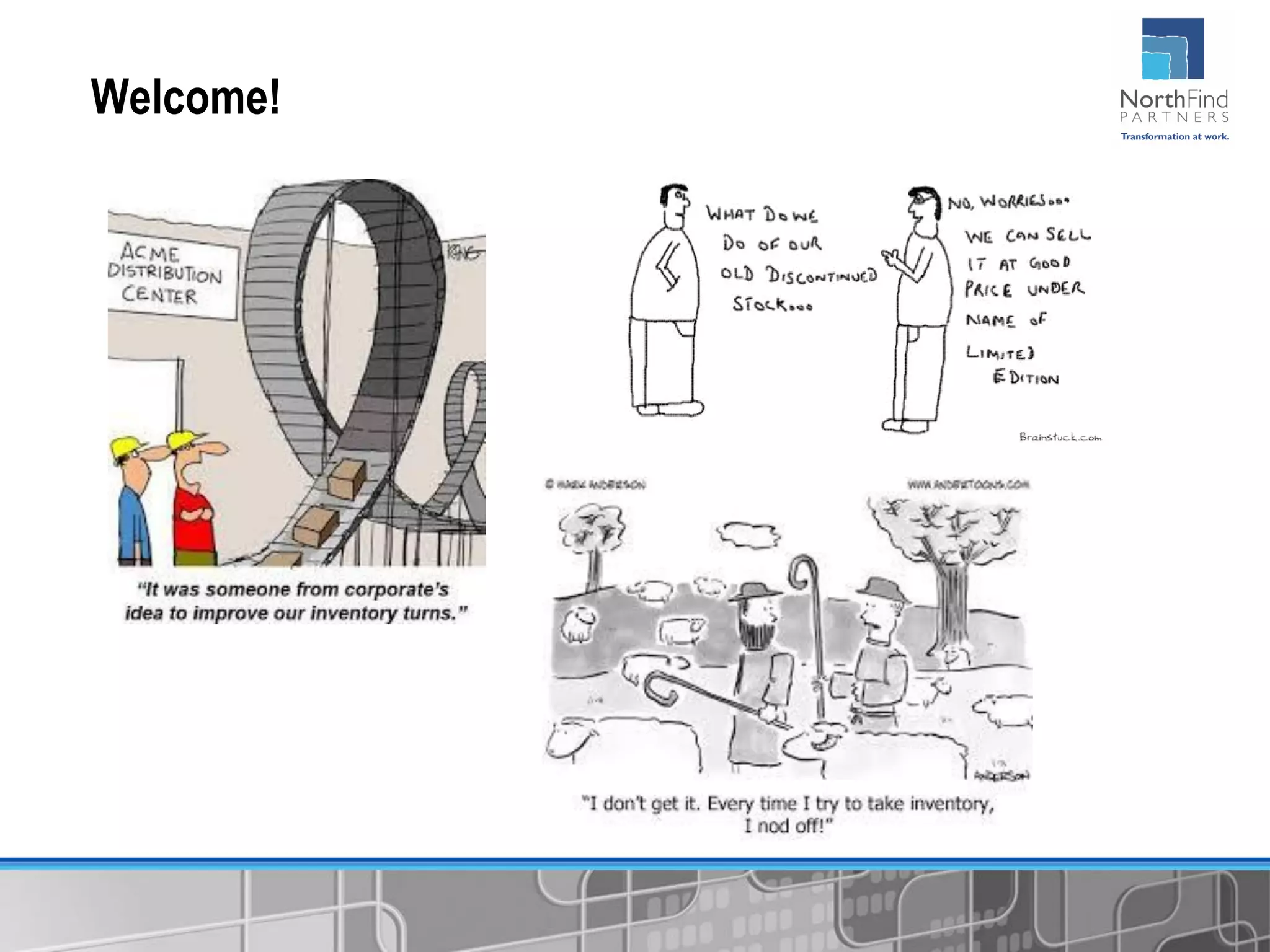 - Inventory should be classified and optimized based on part behavior and importance, balancing costs and service levels.