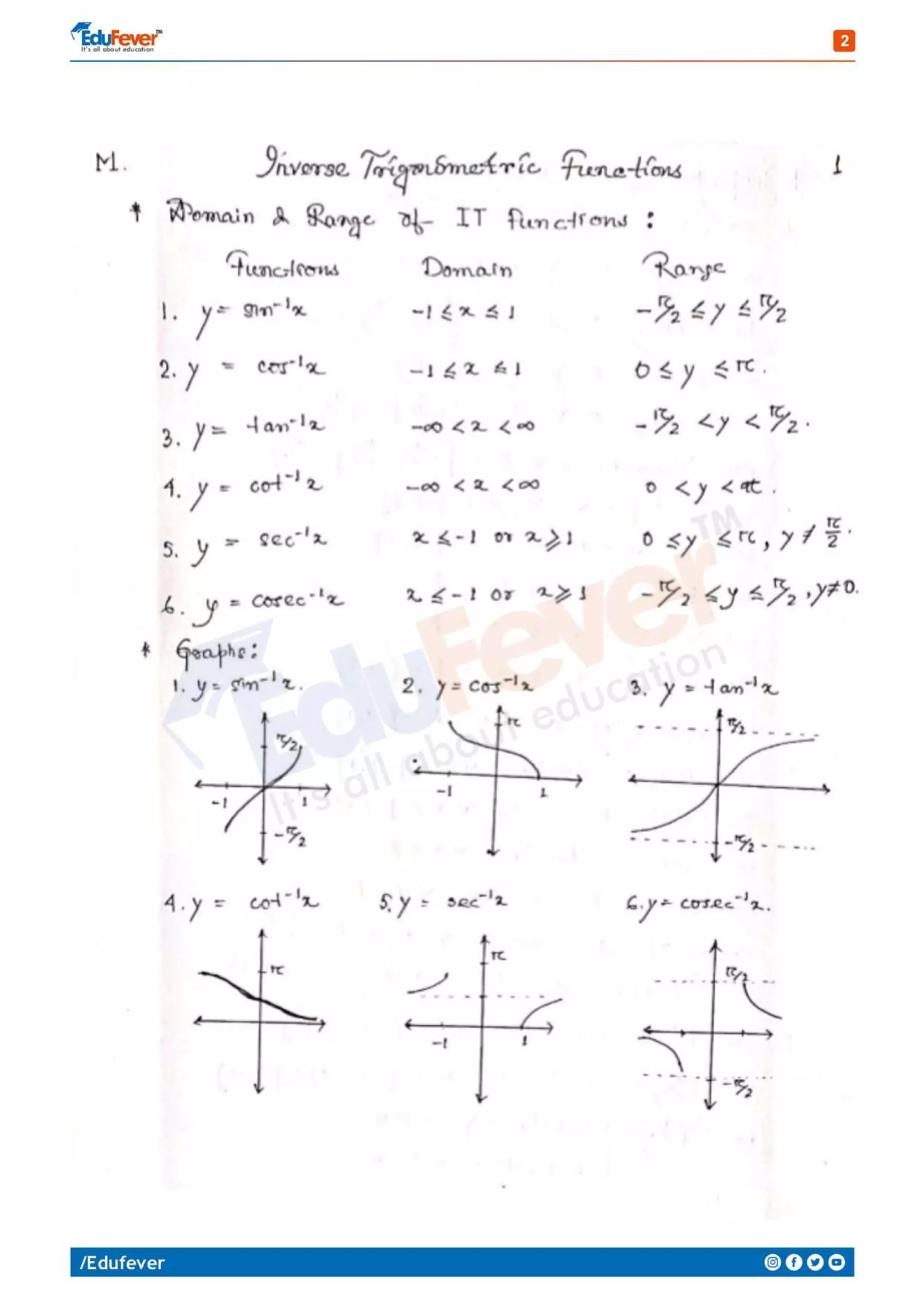 Edufever comes up with important topic handwritten notes. These notes are designed in such a way that the flow of the notes matches the way a topic is taught by an expert teacher. While preparing the notes, the keen focus is given on most important and most asked concepts. The Mathematics Handwritten notes of Inverse Trigonometric Functions are very helpful for aspirants of JEE Mains, CBSE Board Exam and other exams. To get the complete handwritten notes, go to the link - https://bit.ly/2VQCuJv . . #mathematicsnotes #jeeexamnotesmaths #boardpreperation #jeepreperationnotes