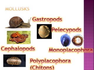 - Mollusks (clams, snails, octopuses) are often soft-bodied but sometimes have hard shells for protection
