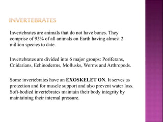 This document summarizes the six major groups of invertebrates: