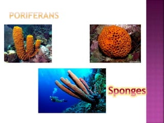 - Poriferans (sponges) lack symmetry and skeletons, instead using protein fibers and calcium carbonate to support their soft bodies.
