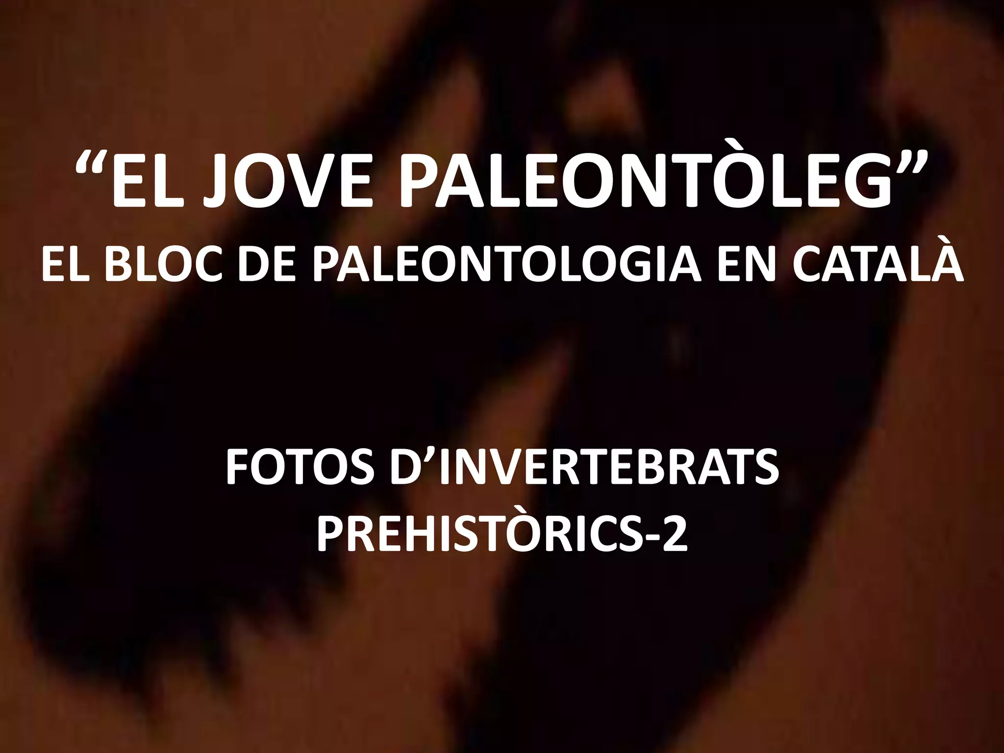 This document contains photos of various prehistoric invertebrates from the Paleozoic Era including Eurypterus, Brontoscorpius, Pterygotus, Orthoceras, Belemnit, Arthropleura, Pulmonoscorpius, and Meganeura. Captions provide the names of the organisms in Catalan.