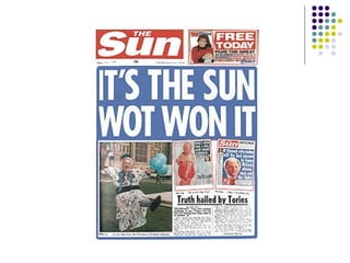 This document discusses various media platforms for receiving media content. It defines media platforms as the technologies through which we receive media products like TV, radio, films, websites, newspapers and magazines. It outlines some key media platforms like broadcasting, print media and electronic media. It provides details on broadcasting institutions in the UK, the major broadcasters like BBC, ITV, Channel 4 and BSkyB. It also discusses concepts like public service broadcasting, audience share, convergence and the shift to user generated content on websites through Web 2.0.