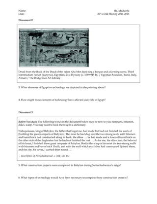 3. Technologies like mummification in ancient Egypt played important social roles, while innovations like Hammurabi's Code systematized laws in ancient Mesopotamia. Overall, these advances supported more populous, organized societies.
