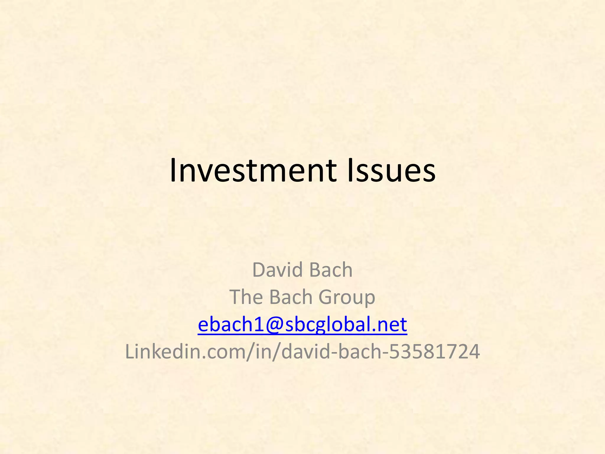The document outlines critical investment concerns, highlighting that many investors fear outliving their money and are financially illiterate, with only 1 in 25 achieving financial independence in retirement. It discusses problems related to excessive fees, lack of transparency in investment products, and the importance of accurate beneficiary forms. Additionally, it emphasizes the benefits of financial literacy, advising investors to educate themselves to improve their financial outcomes and the need for qualified investment advisers to help construct and implement investment objectives.