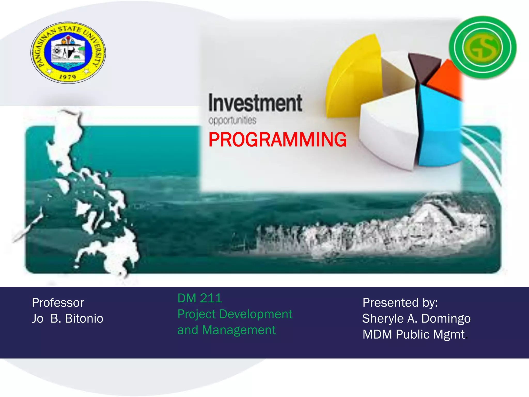2. Investment programming involves systematically identifying, preparing, selecting, and scheduling programs and projects given limited resources to generate assets and capital for future benefits. The investment program is the basis for budgeting.