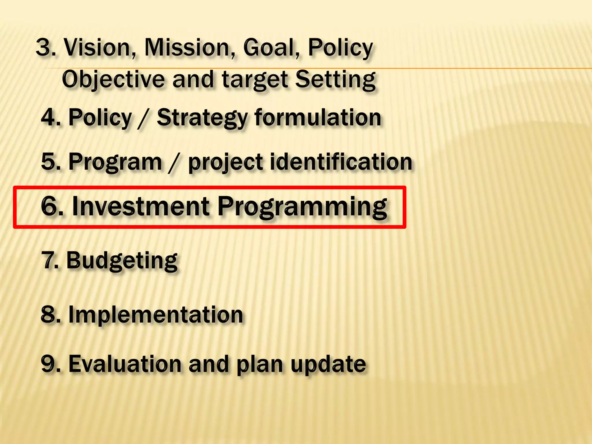 1. The document discusses investment programming as it relates to development planning and strategic planning processes. It outlines the steps in each model.