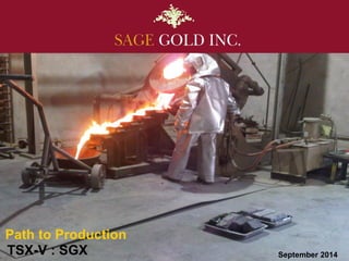 This document provides an overview of Sage Gold Inc., a mining exploration company focused on developing their Clavos gold project and Lynx copper-silver-gold project into production. Key points include: